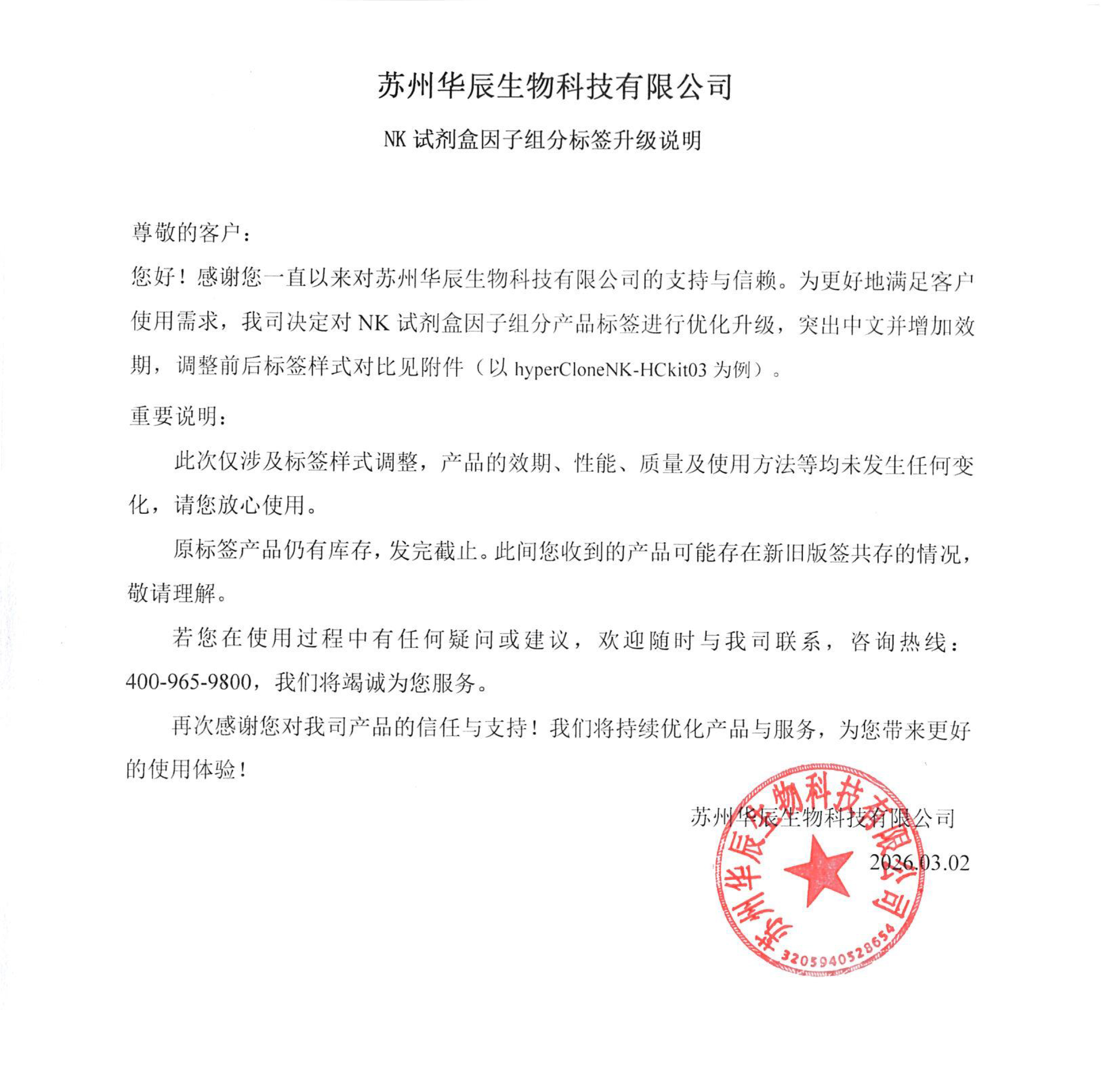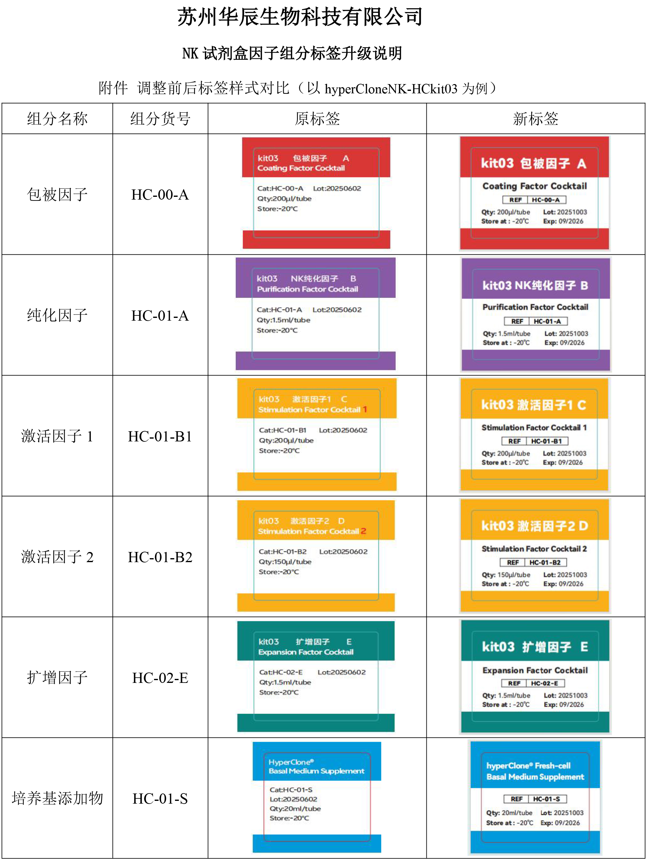 通知:华辰生物NK试剂盒因子组分标签升级说明
