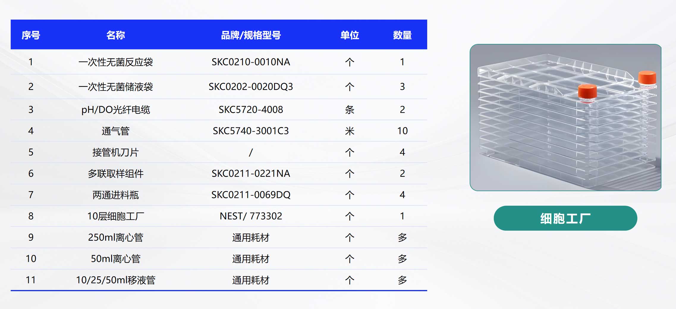 • 1个500ml转瓶,可以培养400ml体系,接种2g/L,0.8g,接种4E7细胞,扩增20倍,即单个瓶4天可以收获8亿细胞,等同于一个十层细胞工厂,一个mini反应器一次可以收获32亿细胞,等同于四个十层细胞工厂;