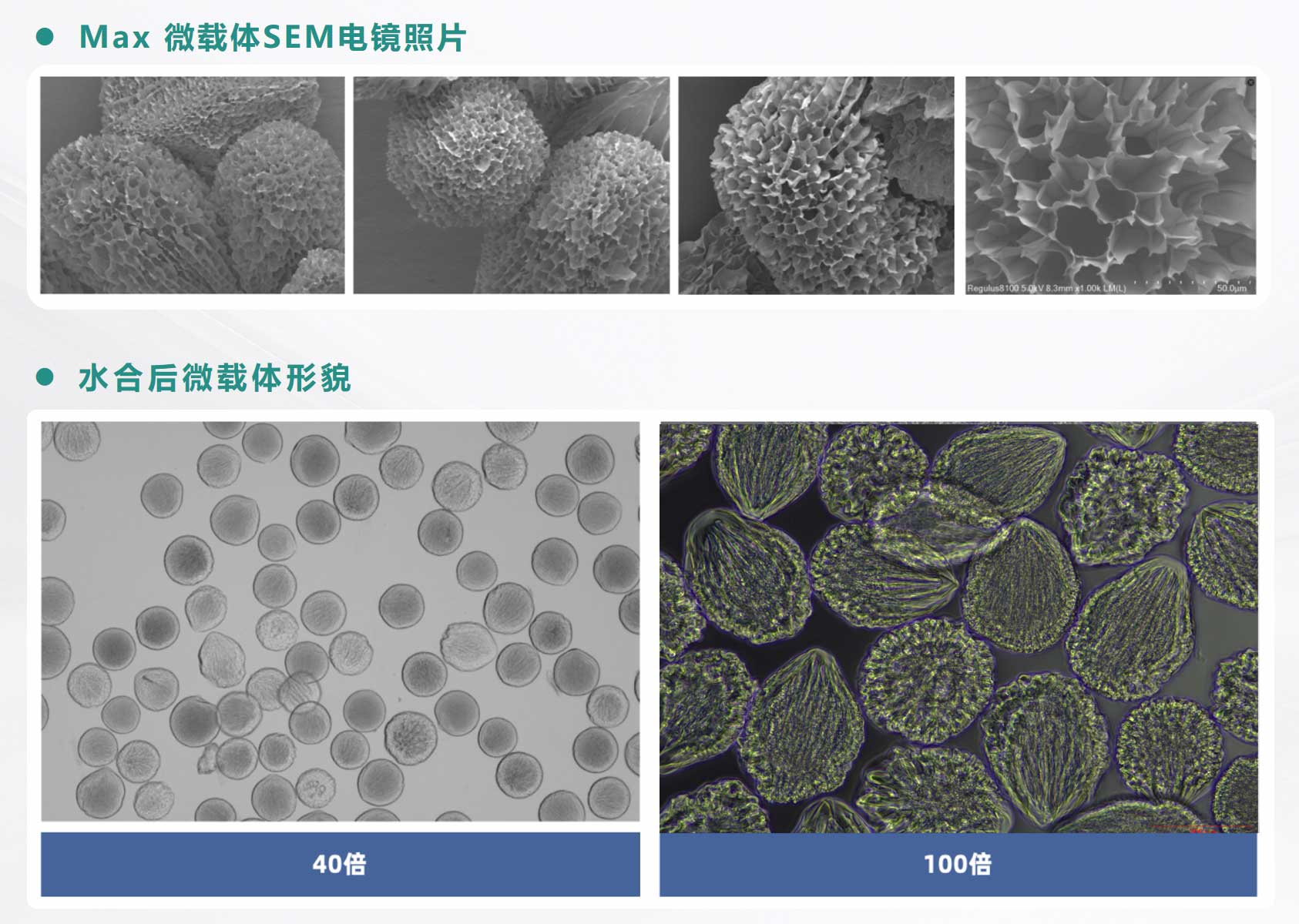 • 粒径大小在250-350μm之间,形态圆润,更适合贴壁细胞黏附扩增。