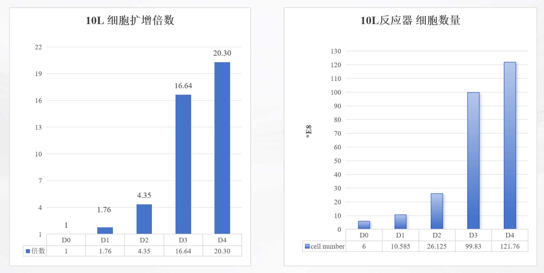 • 5L反应罐,1g/L,培养体积2L,接种1E8/2g, D4扩增20倍,收获2E9细胞