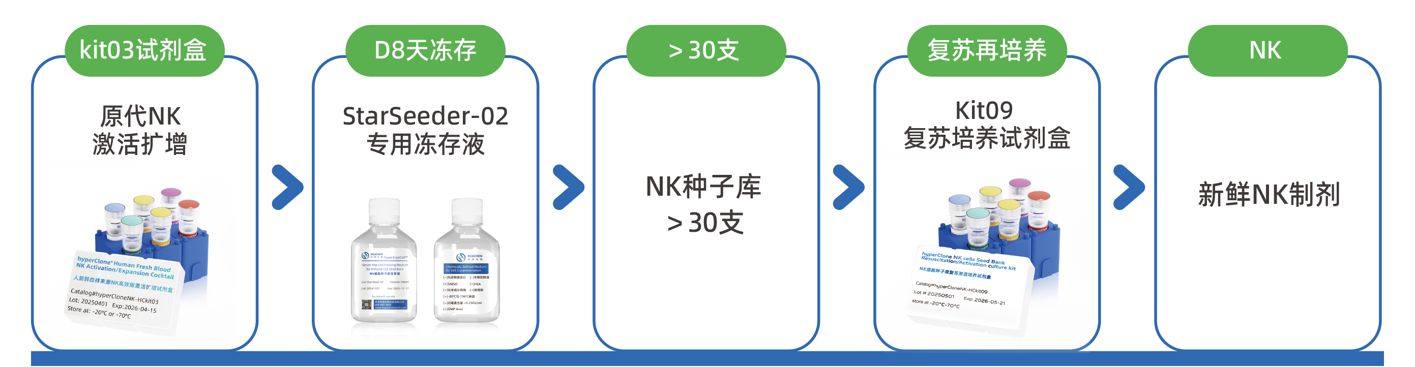 3、客户只需要一次采血,后续只需要从种子库中复苏种子细胞,再次进行培养扩增,即可获得新鲜NK制剂用于抗衰老或治疗