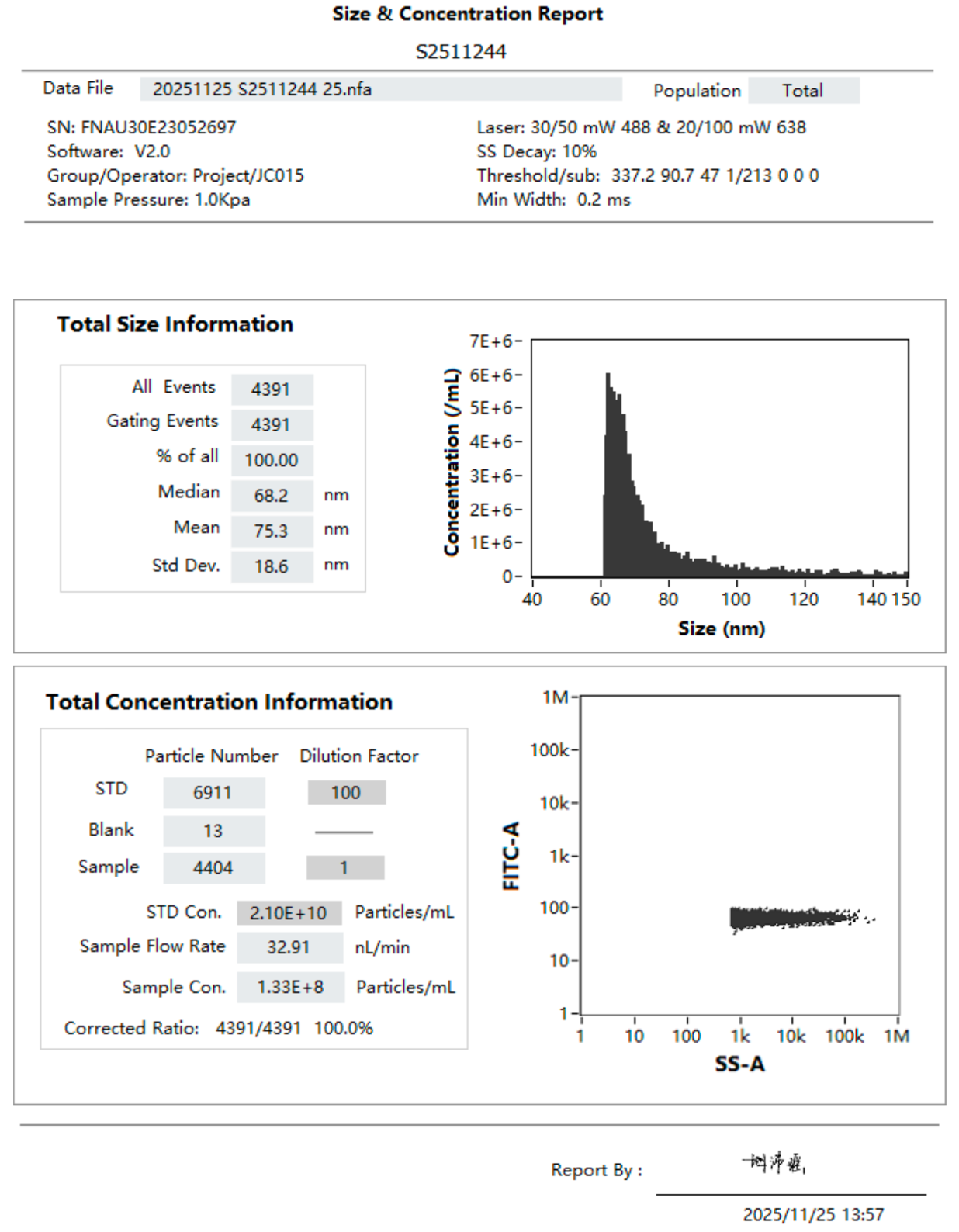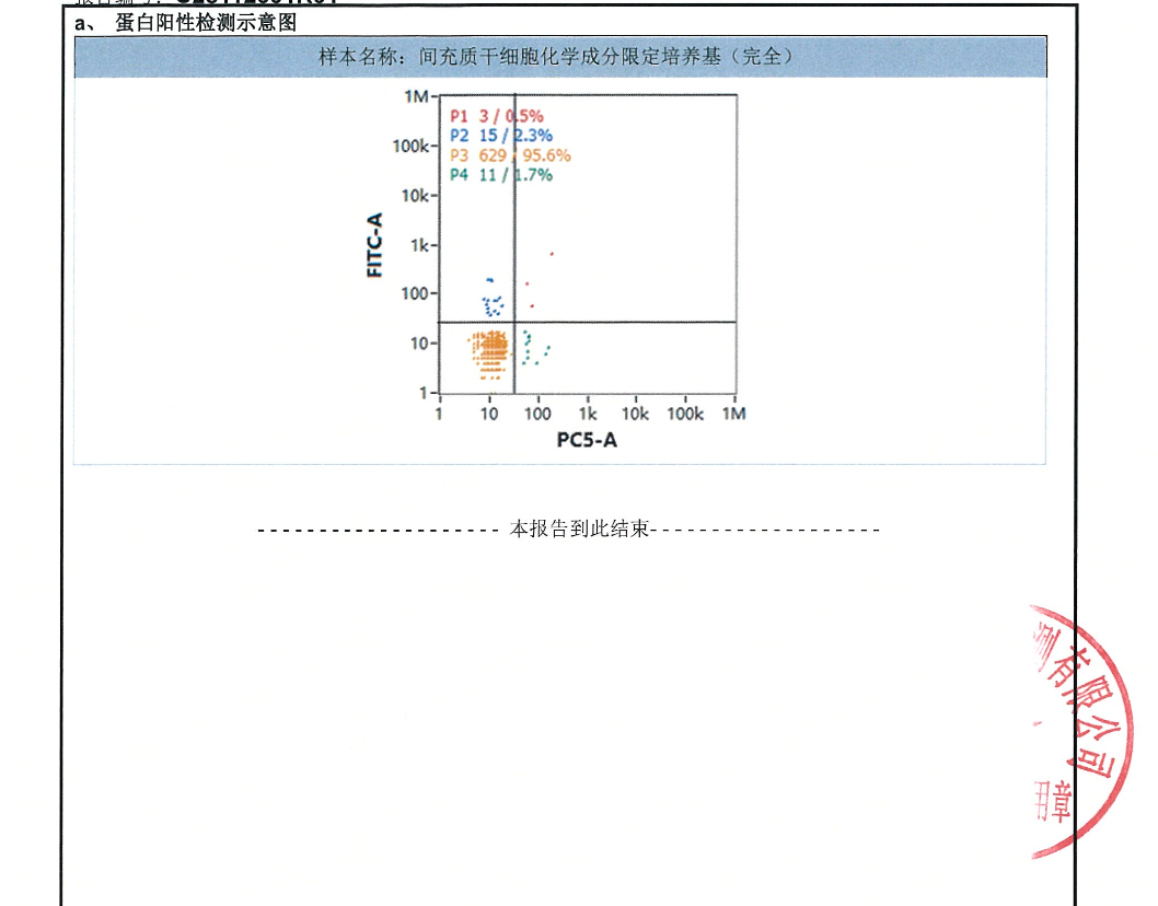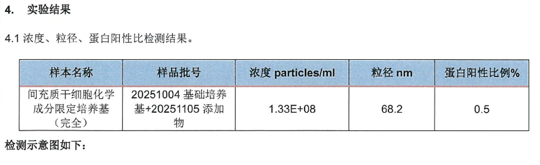 间充质干细胞化学成分限定培养基(完全培养基),送第三方检测结果:颗粒数浓度:1.33E+08 particles/ml;粒径:68.2nm;蛋白阳性比例:0.5%。从结果可以看出,该CD培养基完全培养基中不含有外源外泌体。