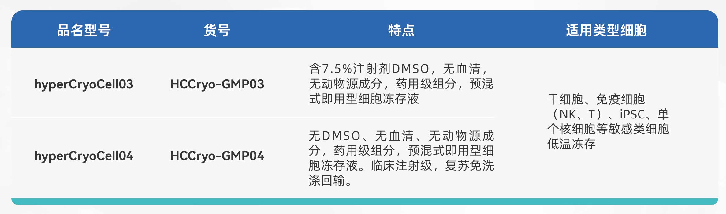 hyperCryoCell™ 系列冻存液产品清单